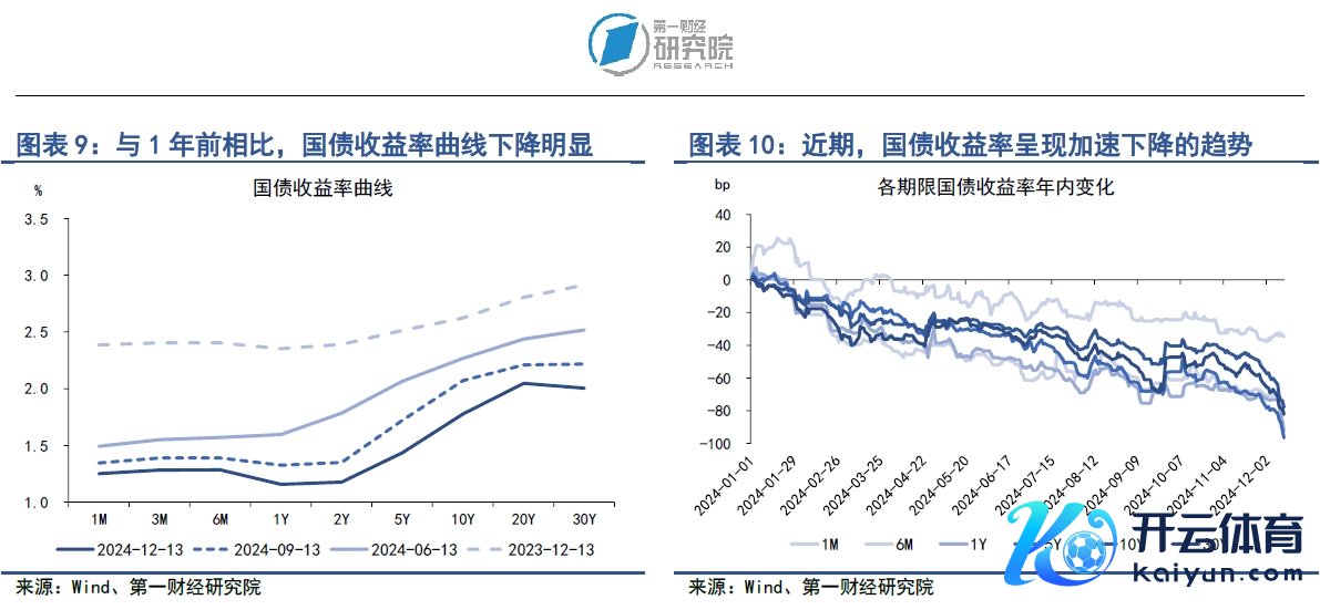 在12月9日至13日当周,各期限国债收益率巨额下落,尤其是长端国债收益率的下放慢度较快。从短端来看,上周3月期、6月期以及1年期国债收益率分手下降2.83bp、3.32bp和8.62bp。从中长端来看,上周中央政事局会议和中央经济责任会议召开之后,市集宽松预期再度加码,中耐久国债收益率呈现加快下行的态势,上周5年期、10年期、20年期以及30年期国债收益率分手下降9.66bp、13.02bp、9.2bp和10.35bp。