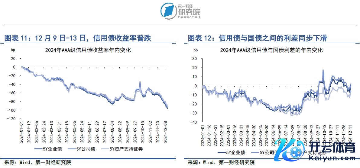 在12月9日至13日当周,各品种信用债收益率巨额下落。在AAA级债券中,5年期企业债、公司债和钞票支抓证券收益率分手下降10.52bp、10.11bp和9.45bp。在AA级债券中,5年期企业债、公司债和钞票支抓证券收益率分手下降10.89bp、14.29bp和10.34bp。