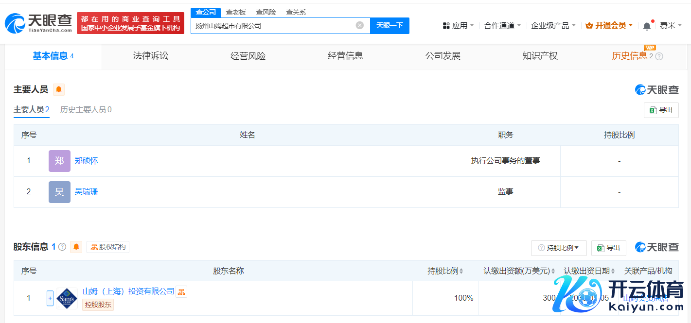 每经AI快讯,天眼查App袒露开云体育,近日,广州荔湾山姆超市有限公司、扬州山姆超市有限公司开发,法定代表东说念主均为郑硕怀,注册成本均为300万好意思元,权略界限均包含食物销售、出书物零卖、第三类医疗器械权略、餐饮工作等。鼓励信息袒露,上述两公司均由山姆(上海)投资有限公司全资抓股。