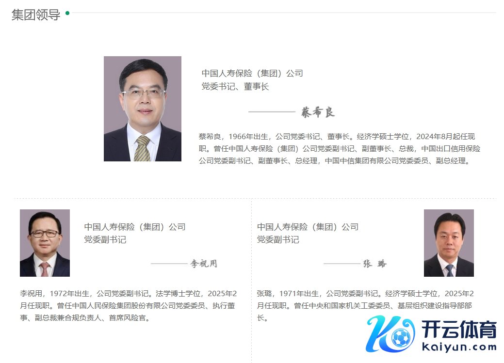 2月26日金融一线音问,中国东说念主寿集团官网显现云开体育,集团指令栏新增一位党委副秘书张璐。简历显现,张璐,1971年出身,公司党委副秘书。经济学硕士学位,2025年2月任现职。曾任中央和国度机关工委委员、下层组织成就率领部部长。